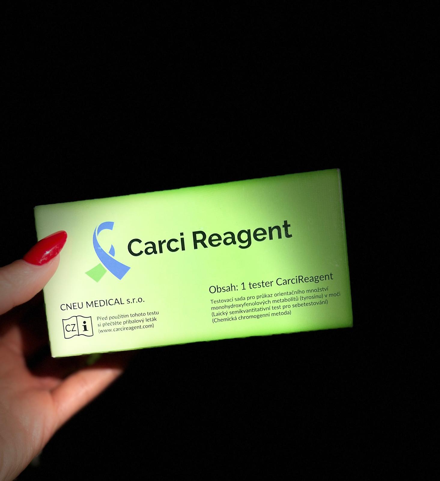 Test CarciReagent® je domácí zdravotnický prostředek IVD pro sebetestování, který umožňuje snadno a rychle zkontrolovat zdraví celé rodiny. Pomocí testu moči orientačně zjistíte hladinu tyrosinu – metabolitu, jehož zvýšená hodnota může naznačovat závažné změny v organismu.
